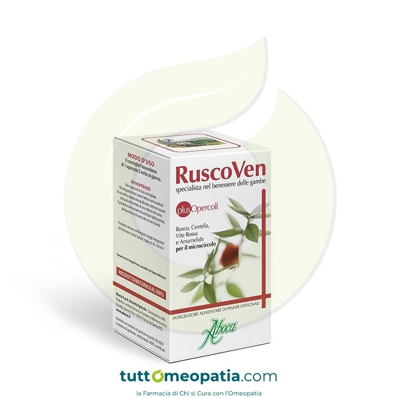 Grazie alla presenza degli Estratti Liofilizzati di Rusco e Centella, l’assunzione giornaliera di Ruscoven Plus opercoli garantisce un apporto di principi attivi naturali utili per favorire la funzionalità del microcircolo. Completano la formulazione del prodotto i concentrati totali di Amamelide e Vite rossa, piante che svolgono una benefica azione per il benessere delle gambe.